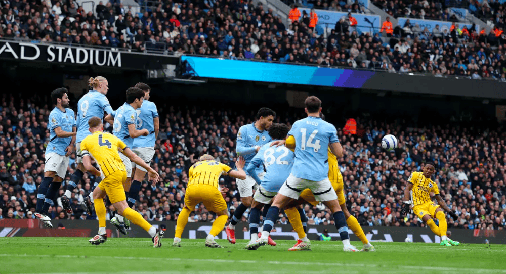 第21分钟,布莱顿获得任意球的机会,面对埃斯图皮尼安的射门,奥尔特加毫无反应,皮球击中立柱,弹入球网。